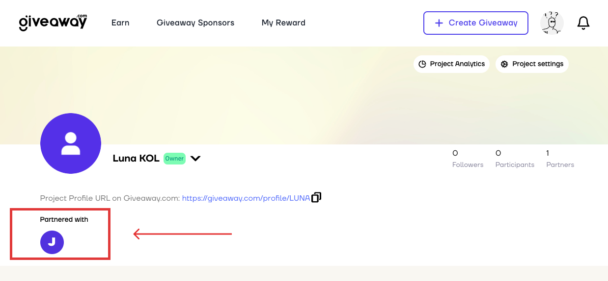 The partnership project's icon will appear on your project profile once you have established a partnership with it.